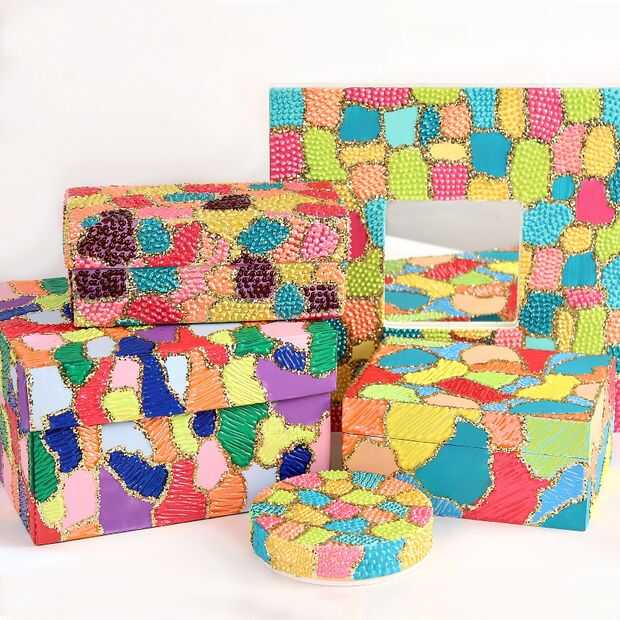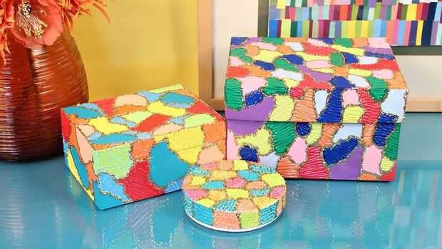 Hacer cajas de mosaico pintado con un poco de pintura y brillo. Una divertida manera de Marcos y cuadros antiguos de upcylce. Usé una vieja caja de zapatos, una caja de queso y un marco de Ikea para este proyecto.