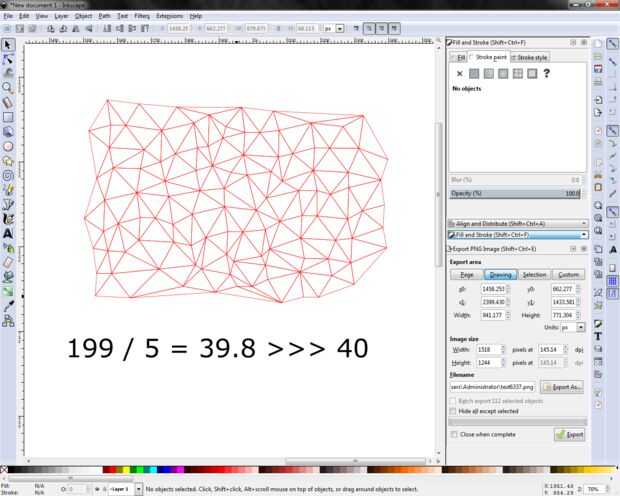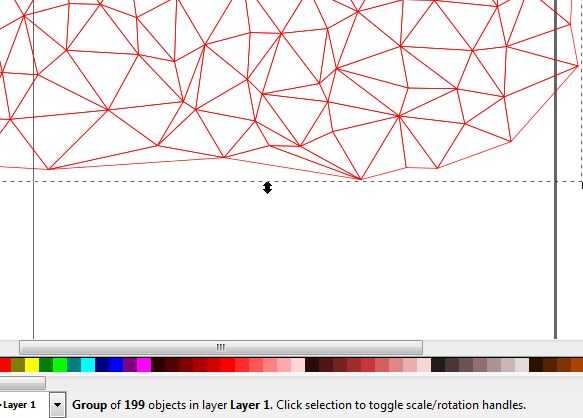 El número total de objetos seleccionados aparece en la barra inferior de herramientas de Inkscape. Tomar este número y dividir por el número de colores en su paleta de colores (que va a utilizar), es decir, 199 / 5 = 39.8 >>> unos 40 casos de cada color. Este es nuestro número de magia.