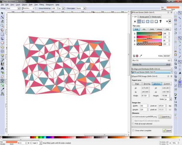 Finalmente, es necesario establecer algunos colores. Seleccione la herramienta Cubo de pintura (Shift + F7) y vaya al menú de ajustes de relleno o trazo (Ctrl + Shift + F). Desactivar el movimiento y establecer el color de relleno para el primer color en su paleta de color.