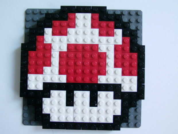 Puede utilizar ladrillos de color verde lima en vez de rojo para hacer el 1-up champiñón.
