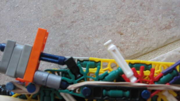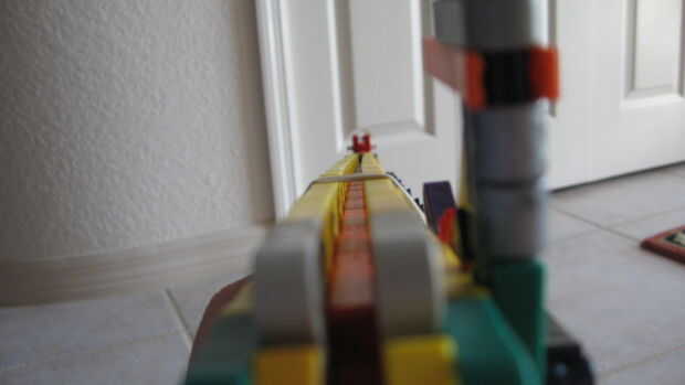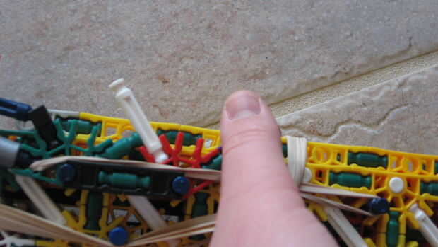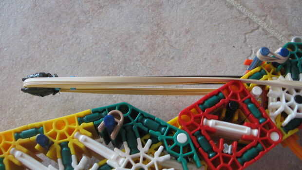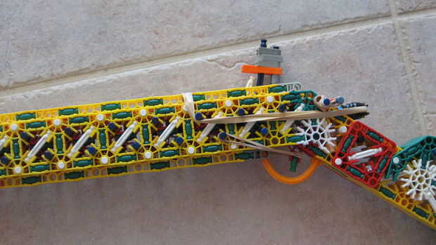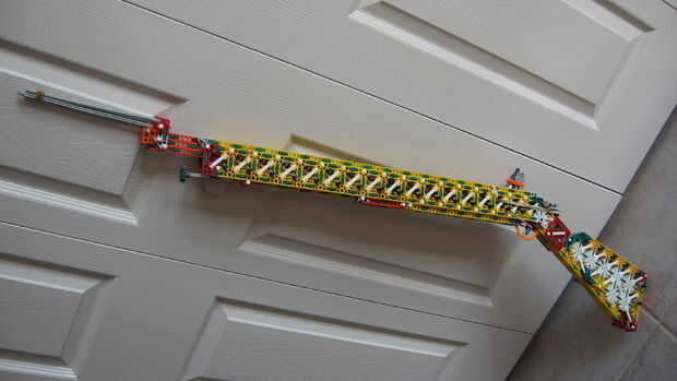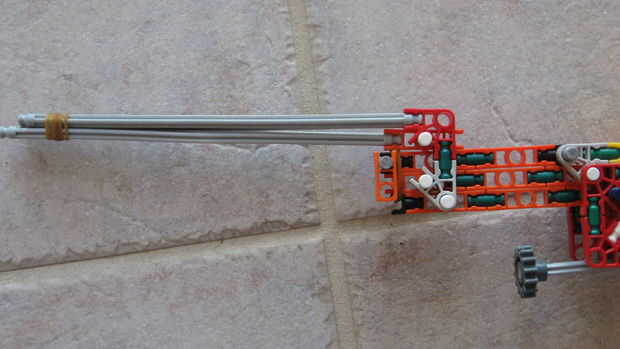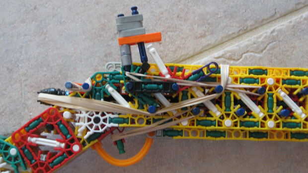 esto es, de lejos mi mejor arma diseñado que he hecho. es muy precisa y con una buena banda de goma tiene un buen rango (40-50 pies). la acción es duradera y el mango diseñado para parecerse a los springfields. está cargada y dispara barras blancas.