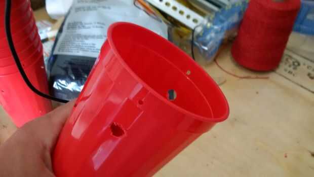 Desea perforar 2 agujeros en el recipiente de plástico. No pude encontrar los negros, por lo que acababa de usar rojo.