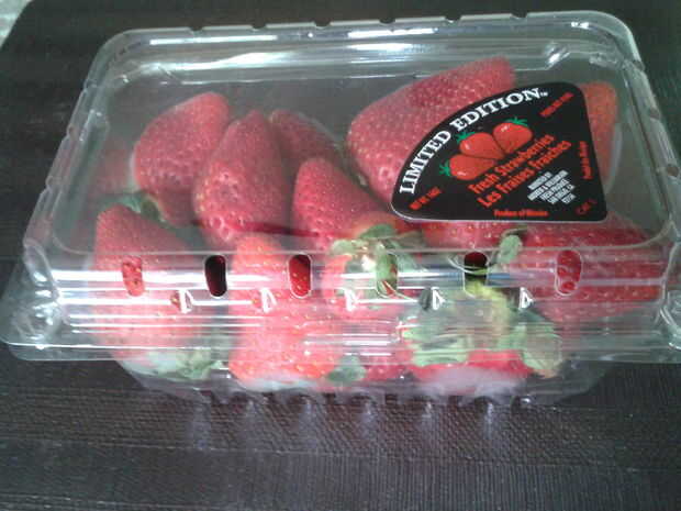 1. 1 mediana tamaño recipiente de fresas, lavadas y cortadas en rodajas horizontales