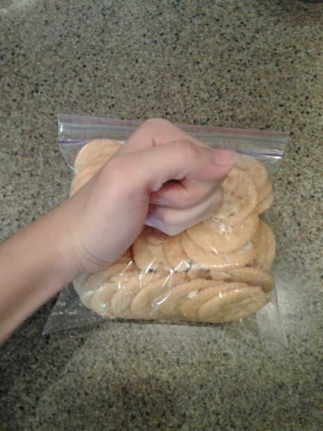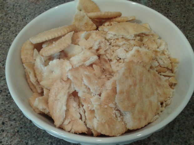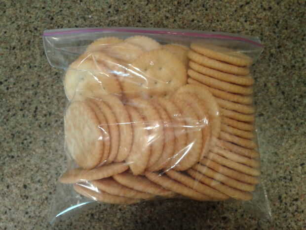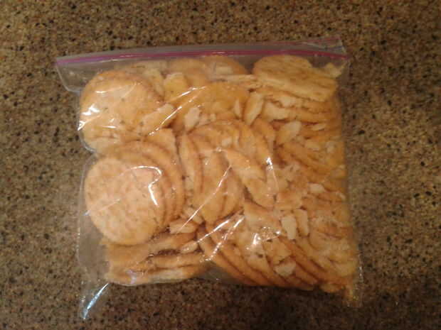 2. después de eso, vierta sus galletas Ritz en una bolsa Ziploc pequeñas/grandes y aplastar con las manos. (No sobre CRUSH... ellas no lucen como las migas pero todavía ser mitad de su tamaño). Ponga a un lado.