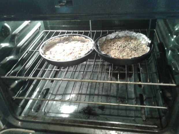 5 hornear ambos a la vez durante unos 20 minutos. (Depende en su horno, pero alrededor de 18-22 min, no desea el pastel demasiado crujiente)