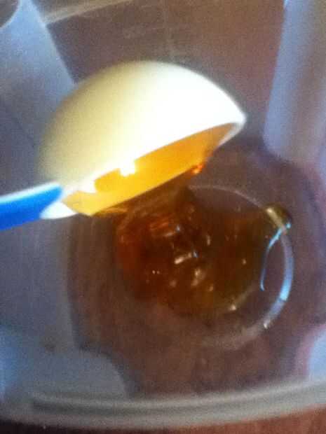 Añadir una cucharada de miel en el recipiente (se verá un poco ya en el tazón de fuente está allí porque más que accidentalmente archivos la cucharada para un poco entró en el tazón de fuente)