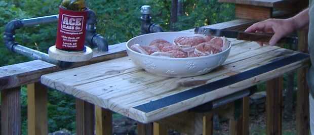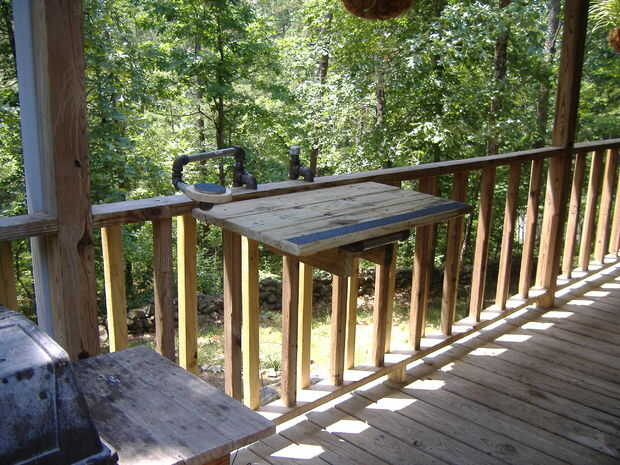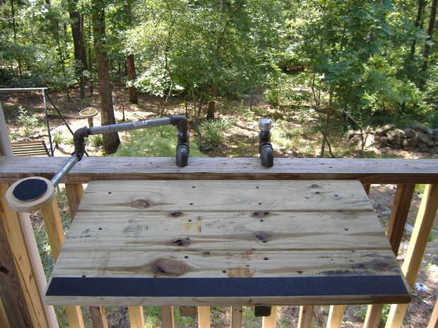 construir una mesa de trabajo de poca potencia larga, angosta, plana, estable que puede ser derribada cuando no esté en uso. Ocho pies largos tramos pueden ser adjunta-to-end para formar una tabla como usted necesita para un proyecto en particular. L