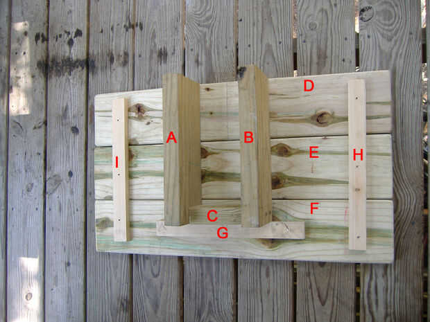 Hay dos piezas de 1 x 2 hacia fuera hacia los extremos de la encimera (señalado en imagen como H e I). Estos son simplemente ayudar a reforzar las tres piezas y añadir cierta rigidez a todo el asunto.