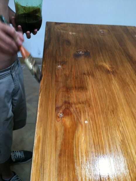luego prepara una mezcla de barniz con color de la tinta de nuez.