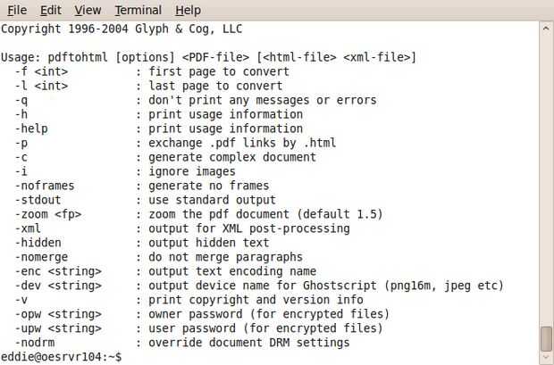 pdftohtml [opciones] [archivo pdf] [archivo de html]