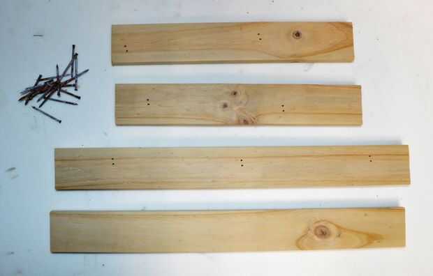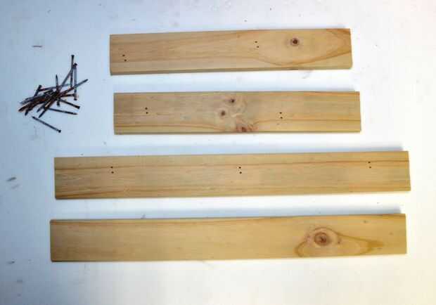 2, corte 2 longitudes iguales de la madera que usted ha elegido. Como se mencionó en la introducción, utilicé algunas piezas de celosía de pino. Serán superior e inferior. Las longitudes que utilicé fueron 300mm