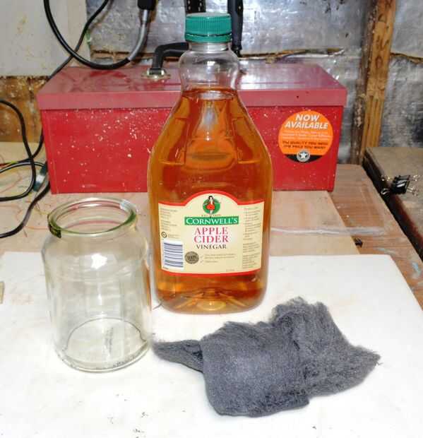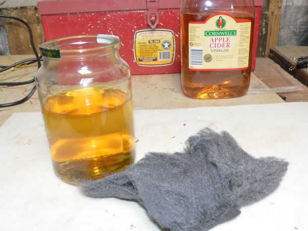 2. añadir algunos lana de acero 0000 para el vinagre y dejar por 24 horas.