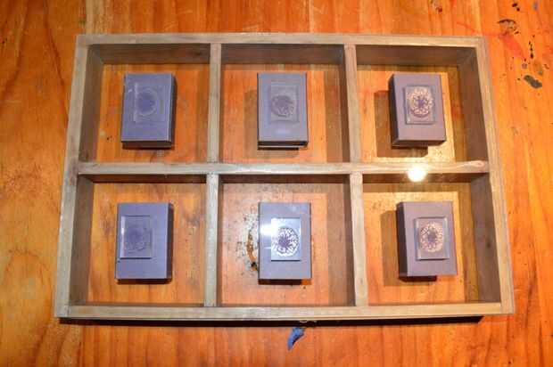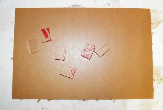 4. una vez que estas se secan, pegar las cajas de fósforos a las piezas de acrílico.