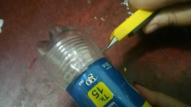 Cortar la parte inferior de las botellas con la ayuda de anti corte