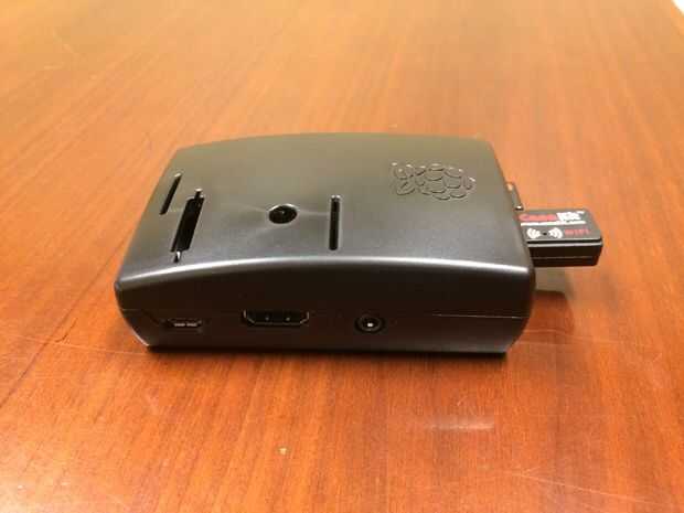 Este es uno de los pasos más rápidos de la Asamblea. Tome su frambuesa Pi y conecte al monitor con el cable HDMI. Se pegan dos piezas de las tiras de comando de 3M en la parte posterior de la caja de la Raspberry Pi. Coloque la caja en la parte posterior del monitor antes de retirar el plástico de la cinta. Esto le permite ensayo ajuste la ubicación del Pi antes de que usted pega en forma permanente. Es mejor que todo lo relacionado a la Raspberry Pi y el monitor para asegurarse de que no tienes conflictos con los cables.