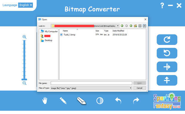 2. ejecutar el software del convertidor de mapa de bits, haga clic en "Abrir" para buscar y abrir "Tuzki_1.bmp";