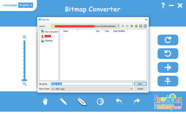 Haga clic en el botón "Guardar como código", seleccione el trazado que desea guardar en, aquí es "... \I2C_LCD-UserManual_EN\DemoCode\BitmapDisplay".
