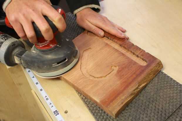 Lijar la superficie de la base usando una lijadora orbital.