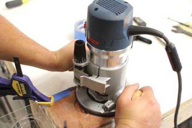 Usando la broca recta y patrón de casquillo que usted previamente basa sus cálculos en hunda la fresadora en la madera y siguen el patrón. Haga varias pasadas para retirar todo el material.