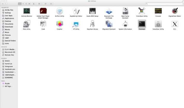 Para abrir la terminal, desplácese a la carpeta Aplicaciones en el finder. A continuación, abra la carpeta Utilidades y haga doble clic en Terminal.