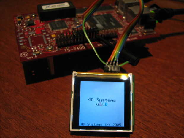 Este proyecto hace uso de uno de los UARTs seriales a bordo. El TS-7400 y la uLCD tienen puertos serie en niveles lógicos (3.3v). Esto hace de cableado los dos juntos una brisa como ningún circuito de interconexión es necesaria.