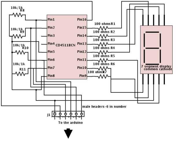 arriba han dado el esquema para construir el escudo y asegúrese de no conectar los cables que parecen estar conectadas en el esquema. Si no eres capaz de capaz de diferenciar entre los cables conectados y no conectados, buscalo en google "Cómo distinguir entre los cables conectados y no conectados en un esquema". También en caso de soldadura de desbordamiento en las articulaciones uso una de bomba o cobre trenzado/mecha para quitarlo y volver a soldar otra vez de soldadura. Asegúrese de cabezales de soldadura que don no toque o se baje no connected.the resistencias todos están conectados a tierra y así es pin5. Pin 5 es habilitar de cierre que permite mostrar diferentes dígitos consecutively(one after the other).pin 16 V + y pin8 V-... En el diagrama las cabeceras deberán conectarse en el siguiente orden de izquierda a derecha: