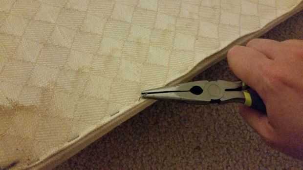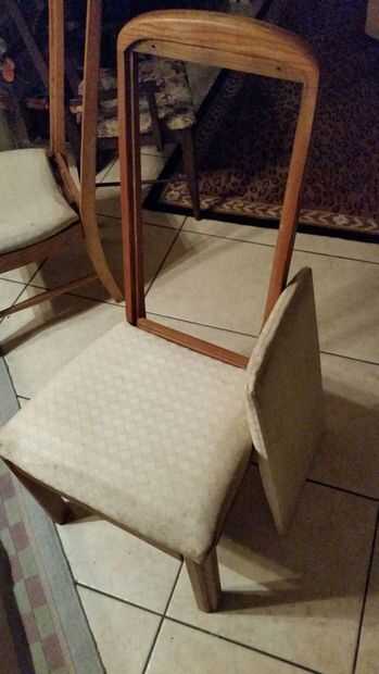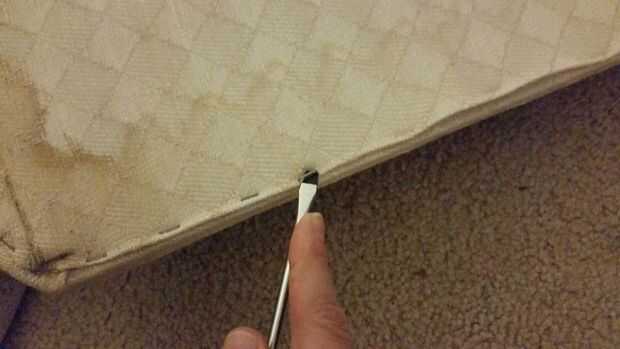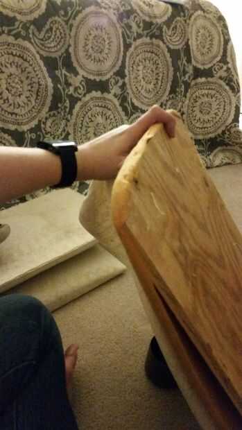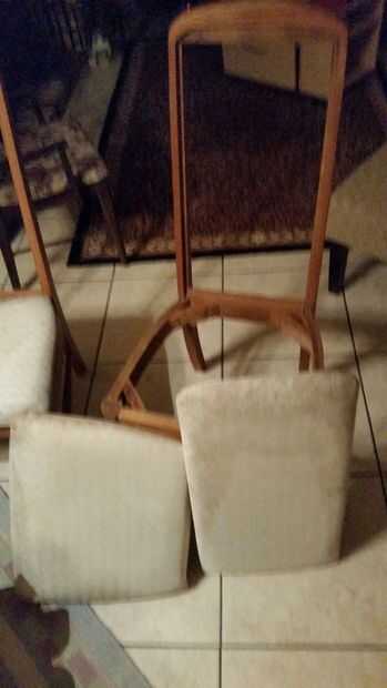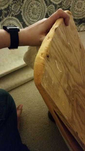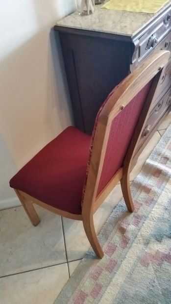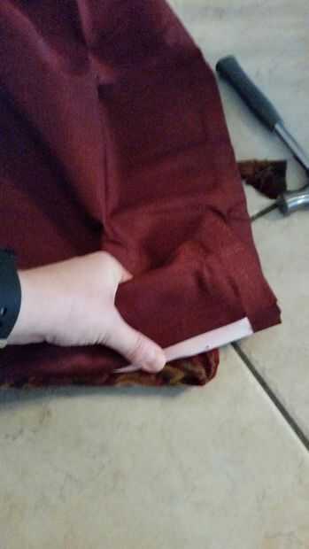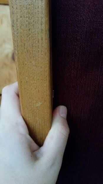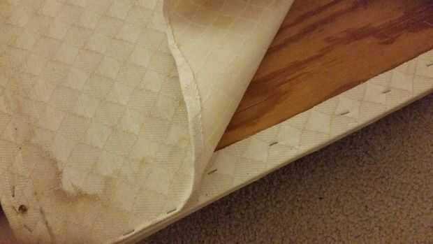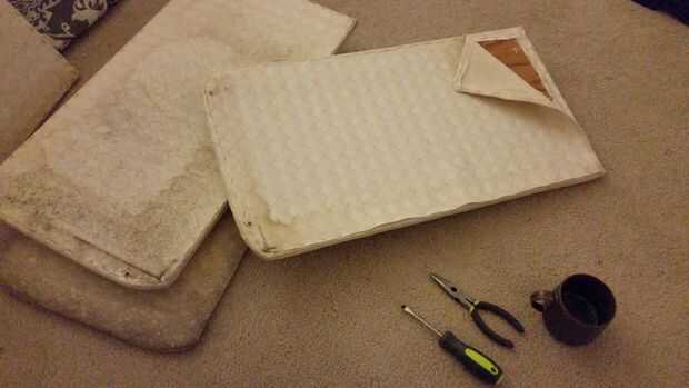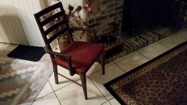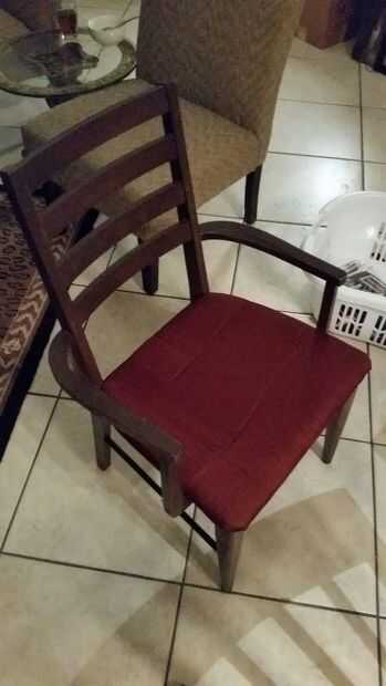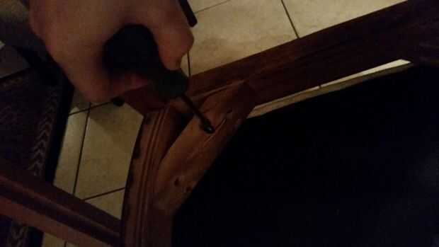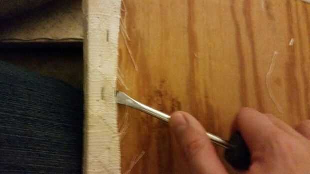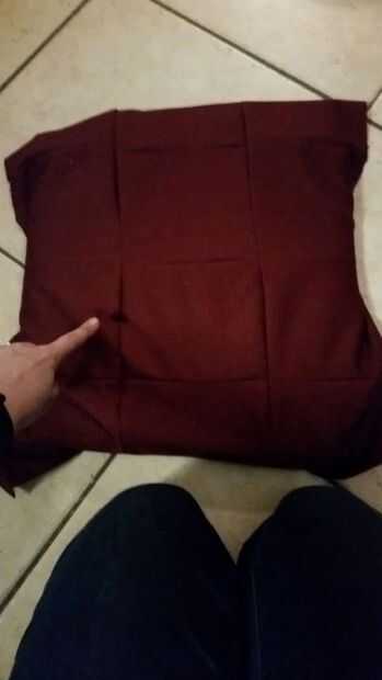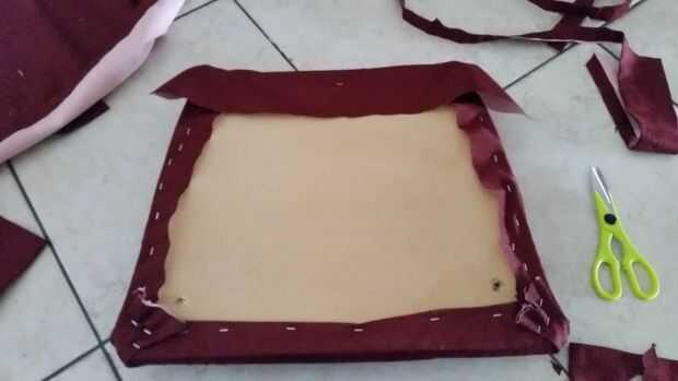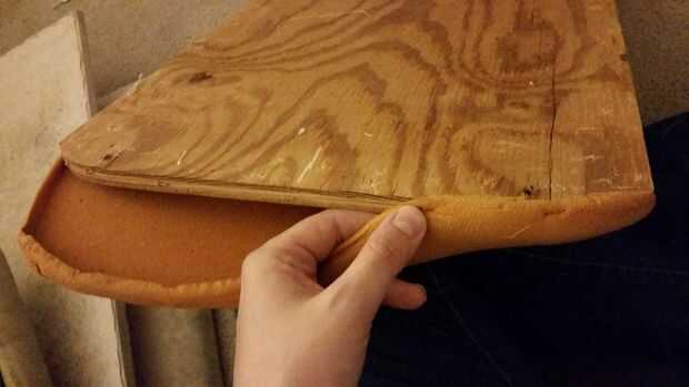 Needed more chairs and mother-in-law was deshacerse de algunos. Resumen: Desatornillar los amortiguadores, saque las grapas con tela, cuidado de preservar amortiguación debajo, asegúrese de que la tela se estira uniformemente y plana, de la grapa con la grapadora de tapicería (asegurándose de que las grapas no serán visibles), orden comprobación de piezas para atornillar detrás para que no hay arrugas en la tela. Bono: habían algunos trozos extras así que cosieron los en una pieza lo suficientemente grande como para recuperar una silla adicional. Asegúrese de que se estira completamente para reducir arrugas de patchwork.
