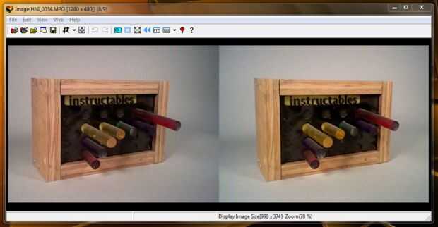 Si tienes los lentes rojo y cian puede hacer una imagen de anaglifo así. Sólo tienes que seleccionar estéreo > ColorAnaglyph > (su opción de estilo de anaglifo), ajustar y guardar.