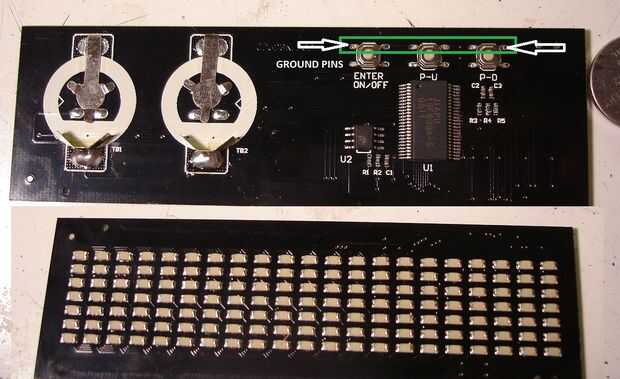 Los tres interruptores de botón simplemente corta la parte inferior del interruptor a tierra cuando presiona. Vamos a simular esta acción por el cambio de la parte inferior de lo swtich entre un pin de alta impedancia (entrada digital) y la tierra (un poco salida digital). Esto se hace fácilmente al cambiar la dirección del perno en un arduino, utilizando pinMode (pin, entrada) o pinMode (pin, salida). Sólo asegúrese de que la salida es baja antes de poner el pin de salida (digitalWrite(pin,0)).