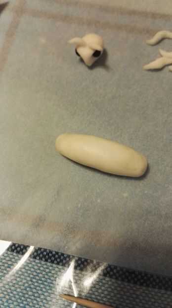 Ahora es momento de hacer los más pequeños, y vamos a utilizar fondant para. Ahora se esculpen las partes restantes y cabeza del merengue los.