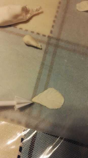 1. hacemos las alas. Toma una pequeña cantidad de fondant y aplanar un 1 mm de espesor, formar en la forma de su ala deseado. Con la herramienta de cono ondulado puede esculpir las venas de las alas. Repetir este paso 4 veces por la polilla.