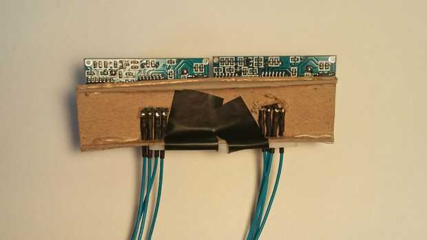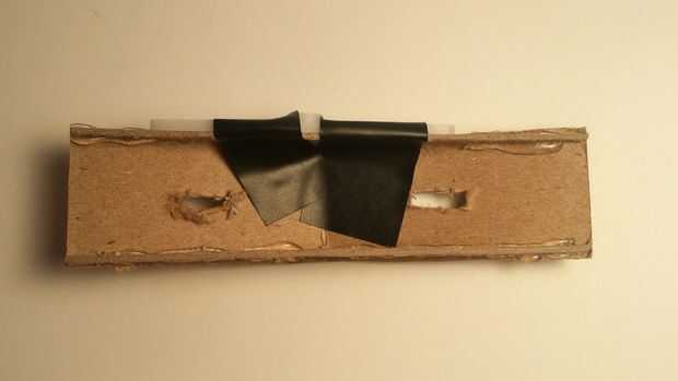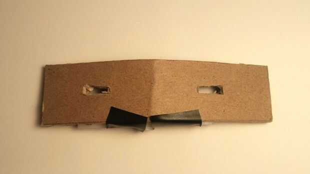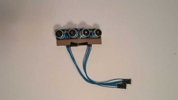 Finalmente, coloque los sensores en el Monte para determinar dónde se corte los orificios rectangulares para que puedan caber en. Hacer el agujero tan pequeño como sea posible porque este ajuste compensa no utilizar cualquier otro tipo de adhesivos o conectores. Ahora corte otro pequeño agujero rectangular en el triángulo de la parte inferior de la montura para permitir jumper cables pasen a través. Una vez que se enchufan los cables de puente, los sensores deben permanecer en el lugar. Si no, usted necesitará fijar con algún pegamento o alfileres.
