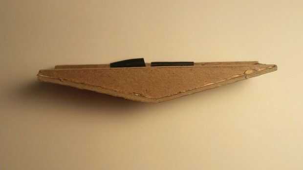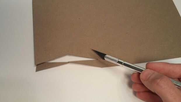 Cortar un rectángulo que es aproximadamente la misma altura que uno de los sensores y 1/8 pulgada (unos 3mm) más larga que dos de ellos juntos. Apartar el rectángulo y cortar dos triángulos isósceles idénticos con el ángulo extraño hacia fuera siendo de 120 grados. Lo corté en 120 grados debido a que los sensores de la gama tienen un cono de 15 grados que miden, esto permite no hay puntos ciegos y optimizar el área de que se detecte.