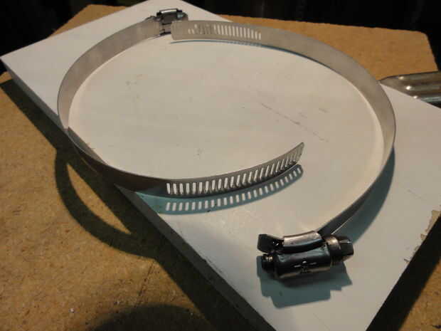 Temporalmente la correa ajustable alrededor de la horquilla, lo que permite un poco más grueso para el interior del tubo (ver siguiente paso) y marca la cantidad de exceso de correa que puede ser cortado y desechado. También determinar qué porciones de la correa se beneficiarían de la liquida y marca la correa por consiguiente. Presentar bordes afilados.