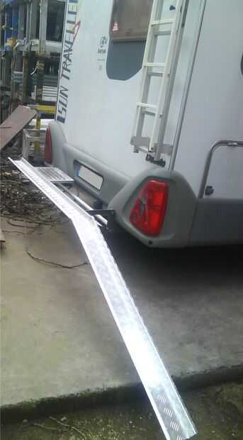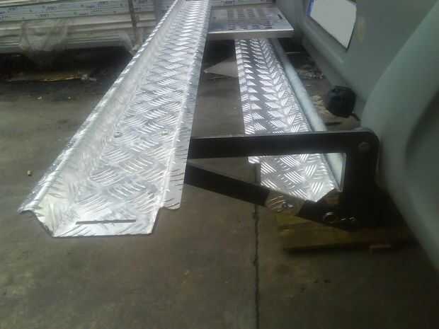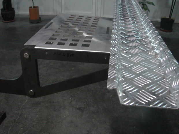 Carril de bicicleta "abre" por bisagras de acero inoxidable cuando está en uso. Si lleva sólo una moto, extensiones pueden permanecer dentro y carril de "cerrado".