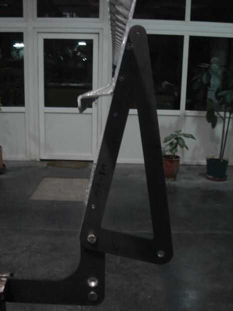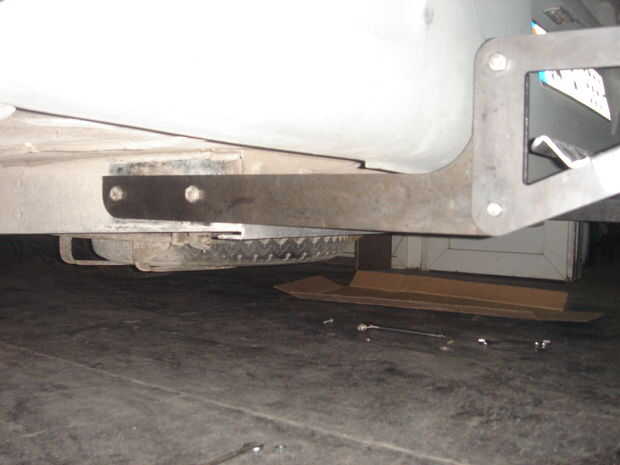 Detrás del carril principal, hay una placa de aluminio para sostener mi generador Honda Eu 10i. Es fijar aquí por correa.