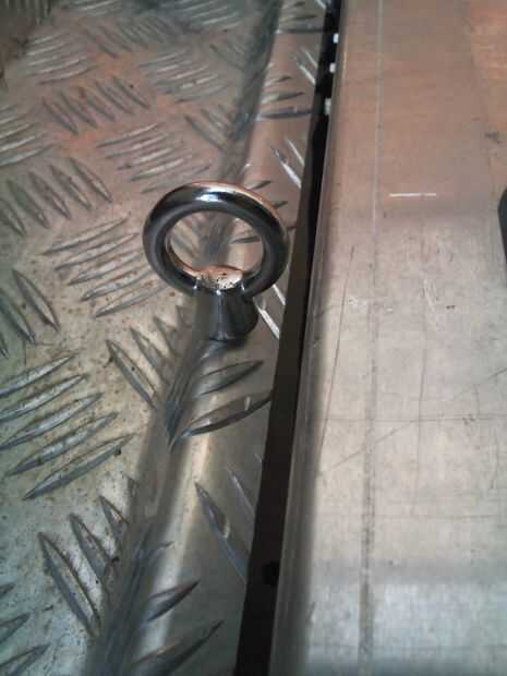Tenga en cuenta "ojales" arreglar motos correa de trinquete de acero inoxidable. Estoy utilizando dos correas para mayor seguridad.
