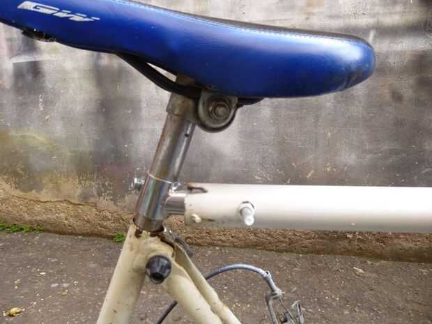 Pasé un montón de noches sin dormir conjeturar cómo en el nombre del Señor I´ll enganchar mi remolque a mi bici de Grannys. Finalmente encontré un fuerte acero Barend de mi antigua bicicleta de montaña. He cortado con una sierra donde comienza a doblar, pongo la parte más larga de la tubería dentro de un tubo de acero más grande y luego en el tubo de remolque horizonntal. Agujeros a través de los tres tubos de acero y adjunta qith un tornillo fuerte.