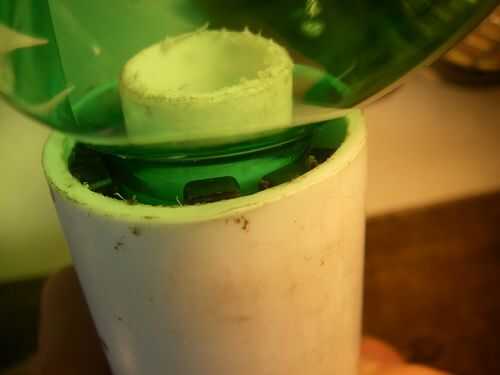 La botella debe ser una tercera lleno de agua (champagne ofrece levanta un poco más, (excepto la cosecha 73; un año terrible para cohetes)).