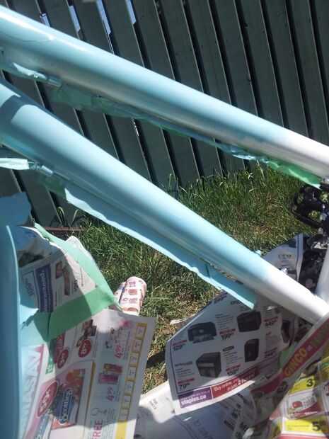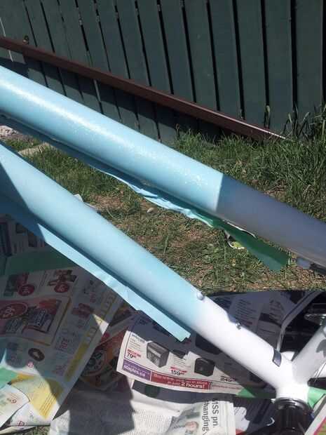 Rocíe la mitad delantera de la moto con la pintura en aerosol azul brisa del mar. He utilizado dos capas, dejar secar 10 minutos entre capa y capa.
