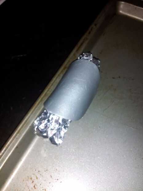 En una bandeja, hornear el Sculpey para 10-15 minutos a 275 grados F.
