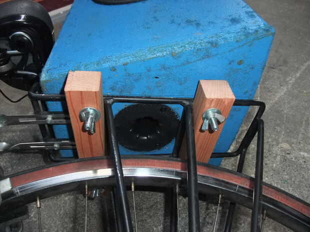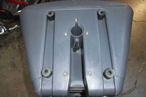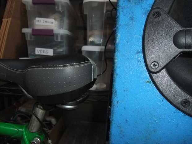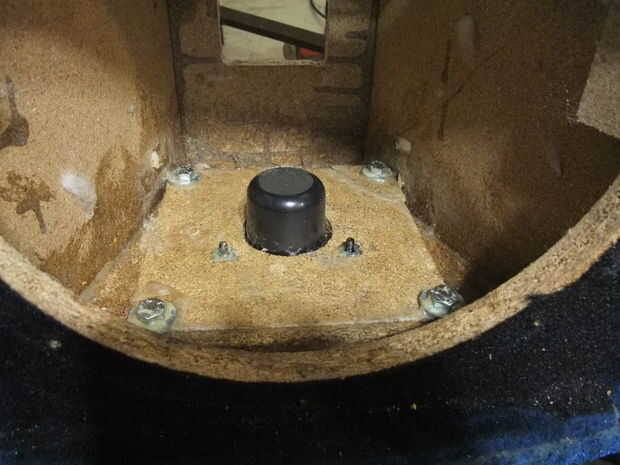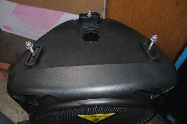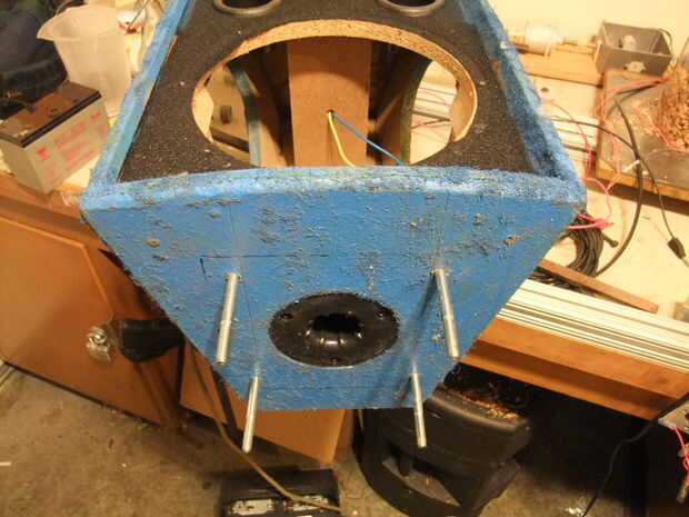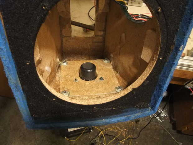 Taladre los agujeros y poner los tornillos en el para que se peguen hacia fuera de la parte inferior del altavoz. Poner pegamento en los orificios para mantener los pernos en su lugar y lo resistente al agua. Asegúrese de utilizar grandes arandelas en los pernos para no rasgar a través de la caja del altavoz. Estos tornillos llevará mucha fuerza cuando usted está manejando en un camino lleno de baches.