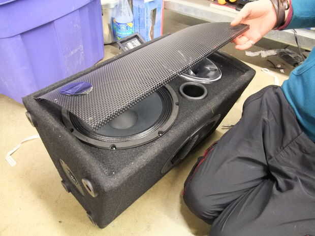 Desatornille la parrilla y el altavoz para bajas audiofrecuencias del altavoz para obtener acceso al interior. mayoría de hablantes de la parrilla esté bien solo, unos pocos es press-fit y solo tienes que tirar duro.
