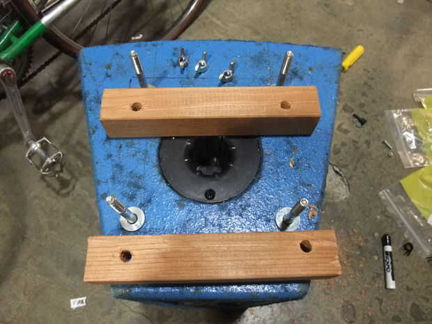 Si su caja del altavoz o bloques de madera son bastante gruesos, probablemente será más fácil perforar ambos juntos. de esa manera los agujeros de perno están seguros alinear correctamente.