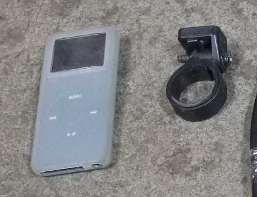Separar el montaje de su vieja luz de bicicleta. pegue o atornille su cinturón del reproductor mp3 estándar en el soporte para bicicleta luz. Ahora tienes un soporte para bicicleta mp3 player! poner en el tubo del manillar o superior. Pase el cable estéreo del titular a la amp