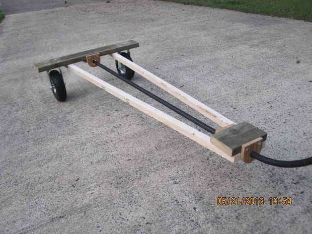 Después de 5 años y unos pocos miles de millas decidí darle mi remolque de moto con ruedas mono (sola rueda) una revisión.Aquí tenemos la el montaje de la unidad de suspensión y rueda, incluyendo algunos refuerzo de la viga transversal (sección de la