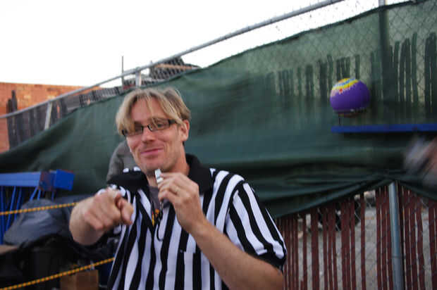 El árbitro es responsable de mantener ley y orden, manteniendo todos seguros, llamadas faltas, parar o arrancar juego, manteniendo la puntuación, liberando pegado carros y excesivamente que sopla su silbato.