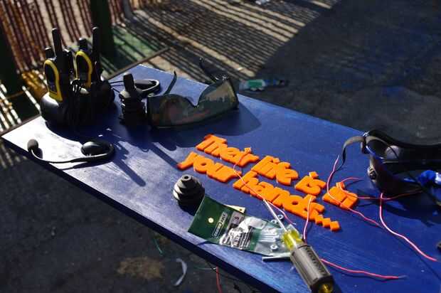 Hacer una caja de madera debajo para mantener la electrónica. Pintar en colores del equipo y pegamento en láser acrílico letras (opcional).