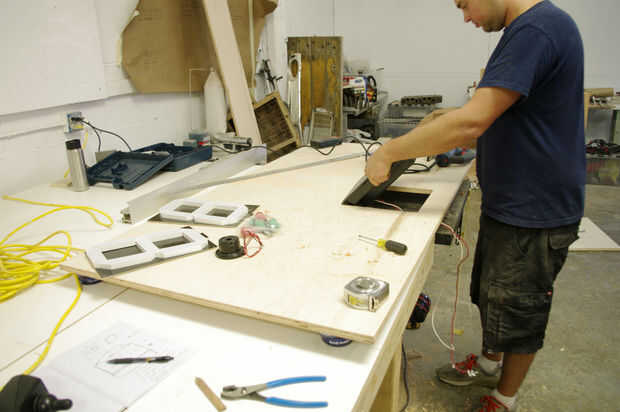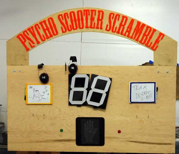 La electrónica en el marcador en gran parte consiste en dos 12" común ánodo displays de 7 segmentos, la mano parada iluminada, un zumbador, 2 botones de arcade y un circuito basado en Arduino.