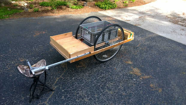 sí, no sé soldar, pero sí sé cómo chapuza!  Este trailer te llevará menos de 30 minutos y menos de $10 en partes si usted puede conseguir un remolque usado que alguien está tirando hacia fuera.  (Probar craigslist o freecycle.com para la gente del vi